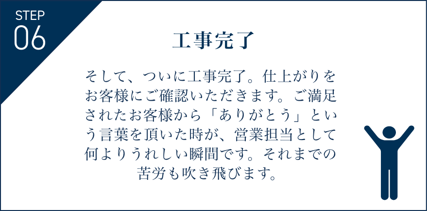 そして、ついに工事完了。仕上がりをお客様にご確認いただきます。