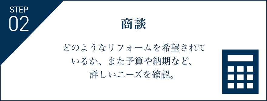 どのようなリフォームを希望されているか、また予算や納期など、詳しいニーズを確認。